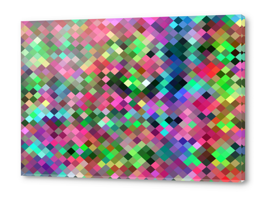 geometric square pixel pattern abstract in pink blue green