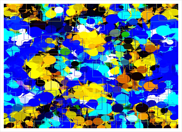 psychedelic geometric circle pattern and square pattern abstract in blue yellow brown