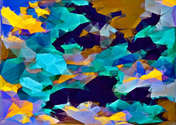 psychedelic geometric polygon abstract pattern in green blue brown yellow