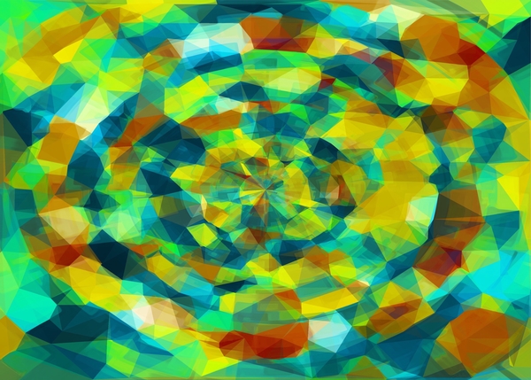 psychedelic geometric polygon pattern abstract in blue yellow green brown
