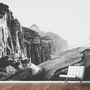 mountain view at Zion national park, USA with summer sunlight in black and white