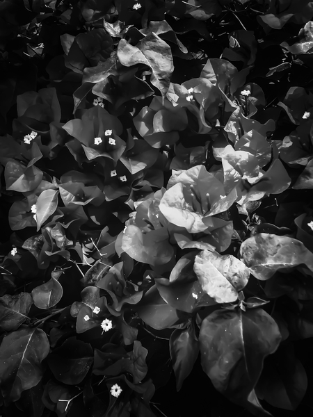 closeup blooming bougainvillea flowers in black and white