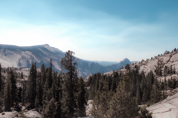 green pine tree and mountain view at Yosemite national park California USA