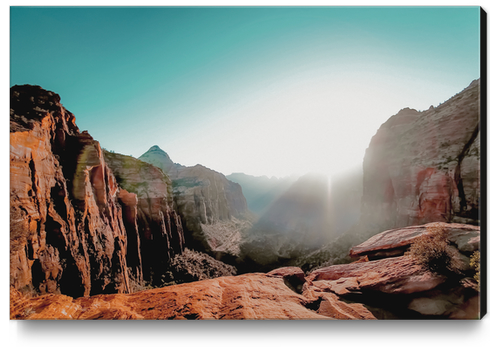 Fine art print on bright white, fine poly-cotton blend, matte canvas using latest generation Epson archival inks. Individually trimmed and hand stretched museum wrap over 1-1/2" deep wood stretcher bars. Back stapled and black sides. Includes wall hanging hardware.