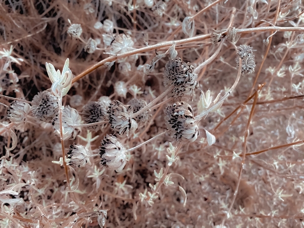 blooming dry flowers with brown dry grass background