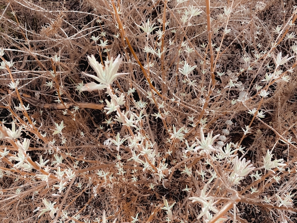 blooming dry flowers with brown dry grass background