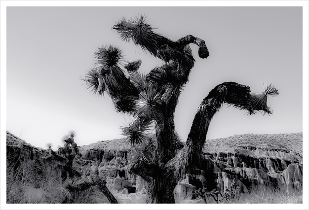 cactus in the desert at Red Rock Canyon state park California USA in black and white