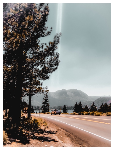 road with mountain and blue sky view at Mammoth Lakes California USA
