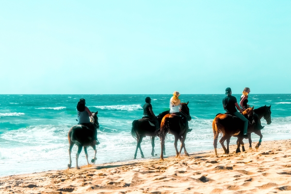 blue ocean with sandy beach at Oxnard Beach, California, USA