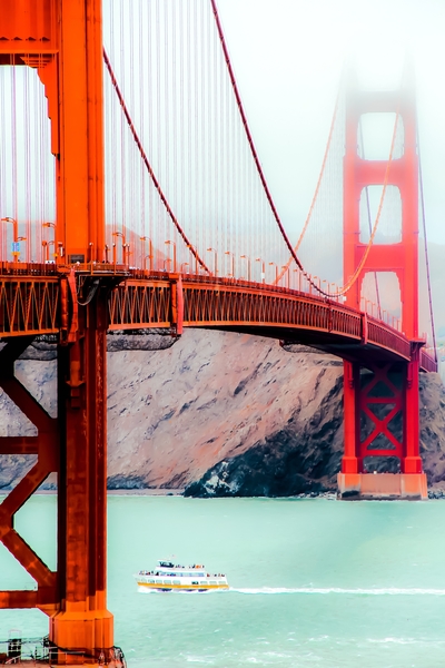 Boat and bridge view at Golden Gate Bridge, San Francisco, USA