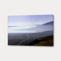 › Road with foggy sky and mountains scenic in California