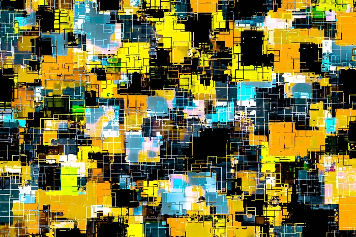 › Geometric square pixel pattern abstract background in orange yellow blue