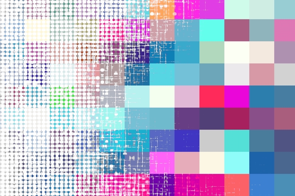 graphic design geometric pixel square pattern and circle pattern abstract background in blue pink red