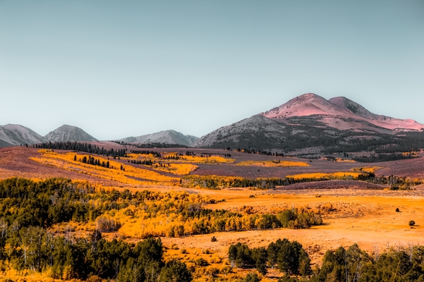 autumn landscape with mountain view and blue sky in California USA