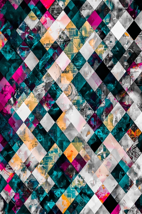 › Geometric pixel square pattern abstract background in blue yellow pink