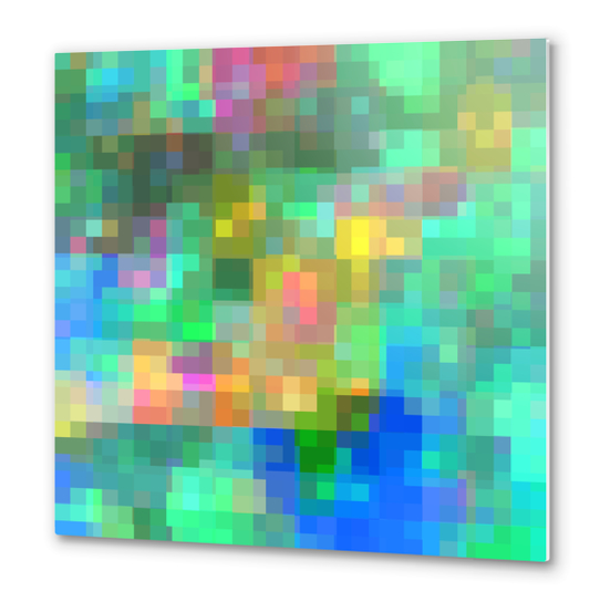 geometric pixel square pattern abstract background in green blue pink