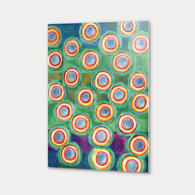 Here several circles are combined to a wonderful pattern. They all share the same colors and are approximately the same size. On first glance due to the color sheme they seem like glowing ri