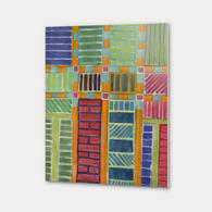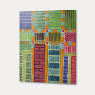 Between a beautiful grid there are different fillings, most of them are striped in one direction or the other, but there is also one filling that reminds at a solid brick wall. Though being