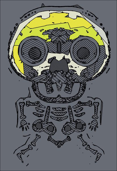 yellow skull and bone graffiti drawing with grey background