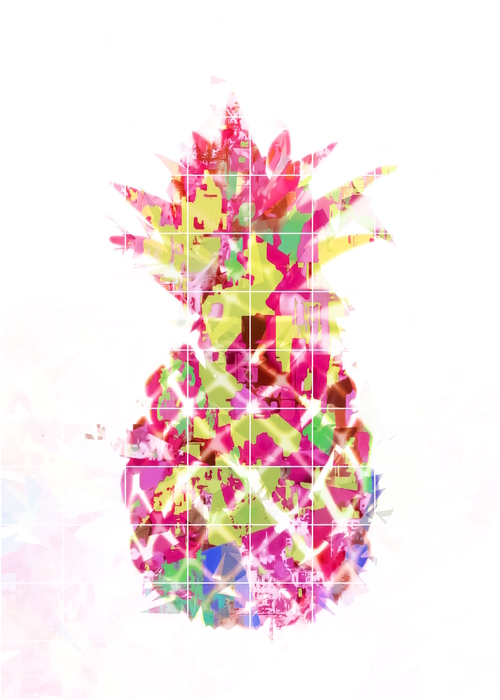 pineapple in pink yellow green blue with geometric triangle pattern abstract
