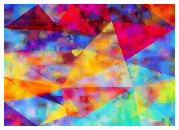 vintage psychedelic triangle polygon pattern abstract in orange yellow red blue purple