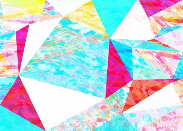 psychedelic geometric triangle polygon pattern abstract in blue pink yellow orange