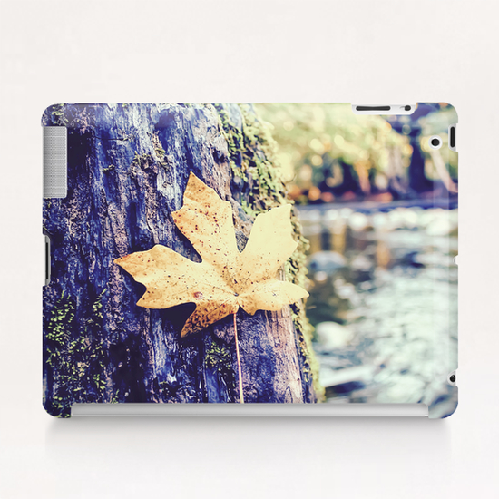 maple leaf on the tree with river and forest background