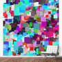 psychedelic geometric square pixel pattern abstract background in pink purple blue green red