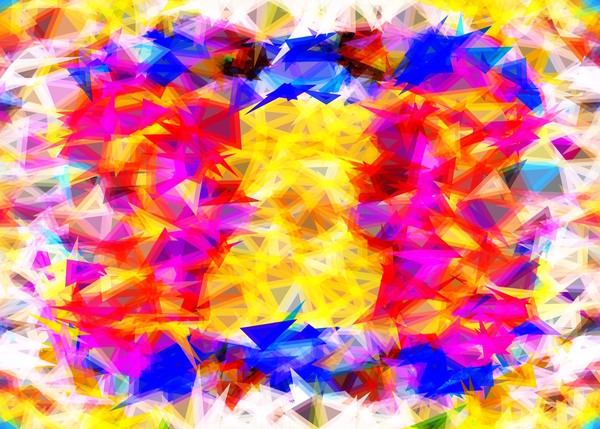 psychedelic geometric triangle pattern abstract background in pink yellow red blue