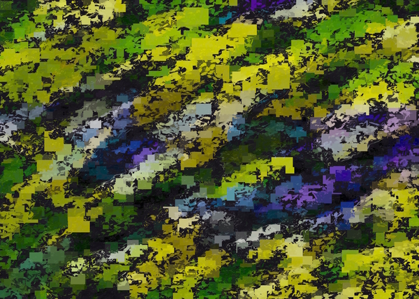 psychedelic geometric square pixel pattern abstract background in yellow blue black