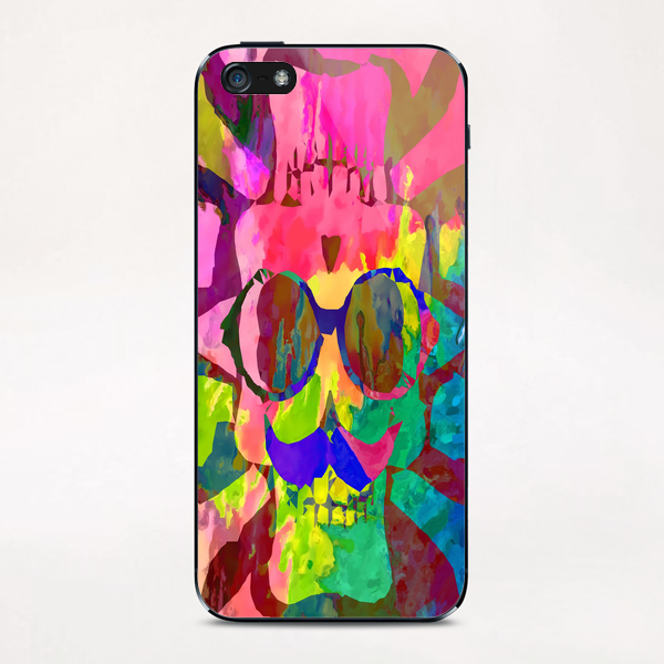 old vintage funny skull art portrait with painting abstract background in red pink yellow green blue