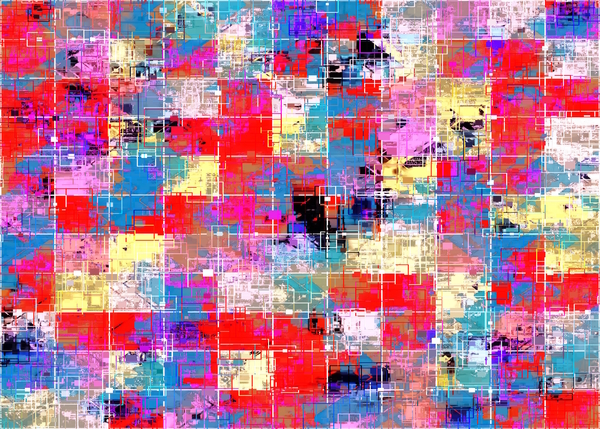 psychedelic geometric square pixel pattern abstract background in red pink blue yellow