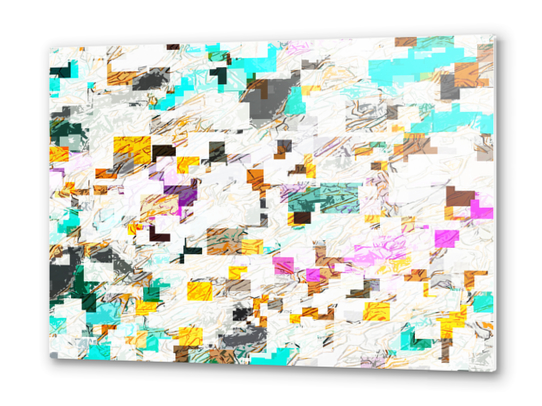psychedelic geometric square pixel pattern abstract in orange pink blue brown