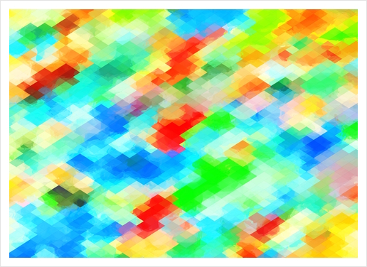 psychedelic geometric pixel abstract pattern in blue green red orange