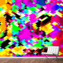 psychedelic geometric pixel abstract pattern in pink purple blue green yellow