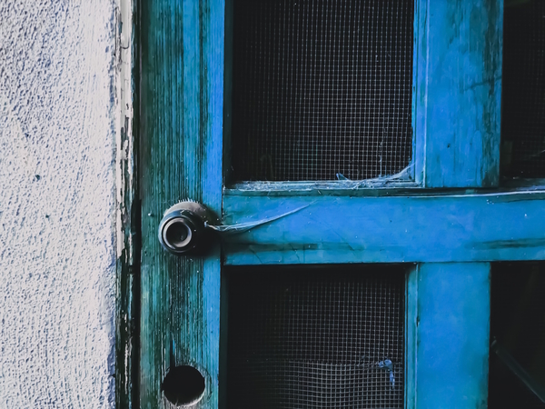closeup old blue vintage wood door texture background