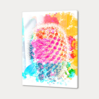 closeup cactus with colorful painting abstract in pink orange blue