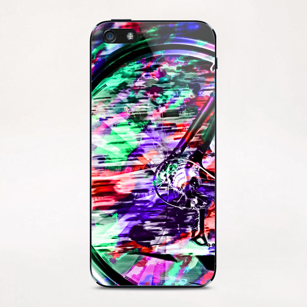 bicycle wheel with colorful abstract background in green red and purple