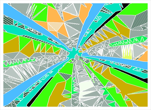 psychedelic geometric pattern drawing abstract background in blue green yellow brown