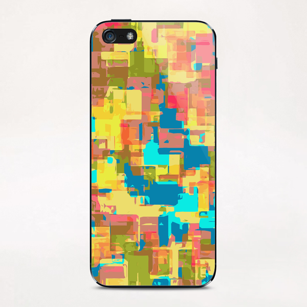 psychedelic geometric abstract pattern in blue pink green yellow brown