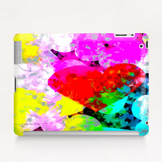 red heart shape pattern with colorful painting abstract in pink blue green yellow