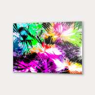 palm leaf with colorful painting abstract background in pink purple green blue yellow