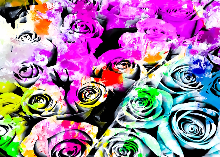 rose texture abstract with colorful painting abstract background in pink blue green red yellow