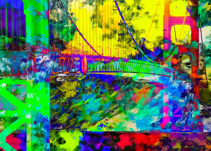 Golden Gate bridge, San Francisco, USA with colorful painting abstract background