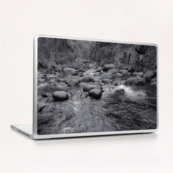river in the forest with tree in black and white